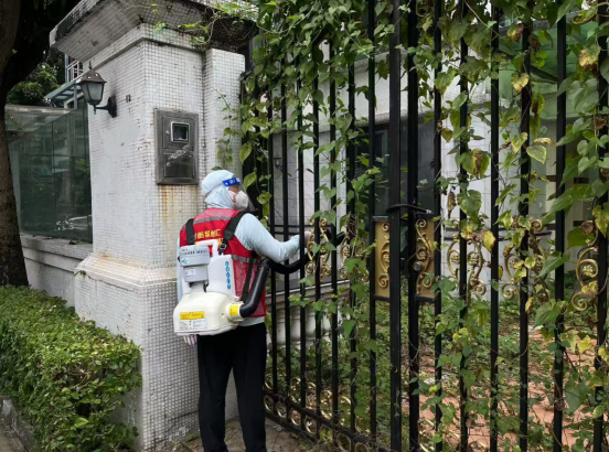 此外,缤纷汇社区制定了详实的消杀工作计划,并主动加强与物业管理公司、街道专业消杀队伍的协同联动。明确社区生物防制党群志愿服务队的“应急辅助”定位,并针对重点区域、异常点位开展补充消杀,与物业管理公司的常规消杀形成互补,构建起“日常防控+应急处置”的高效能防控体系。